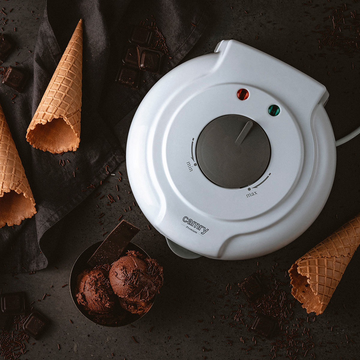 Max 1500W teljesítmény, 18cm-es tapadásmentes sütőlapok, ostyák, sajtos tallér, tölcsér készítésére használható, hőmérséklet szabályzóval